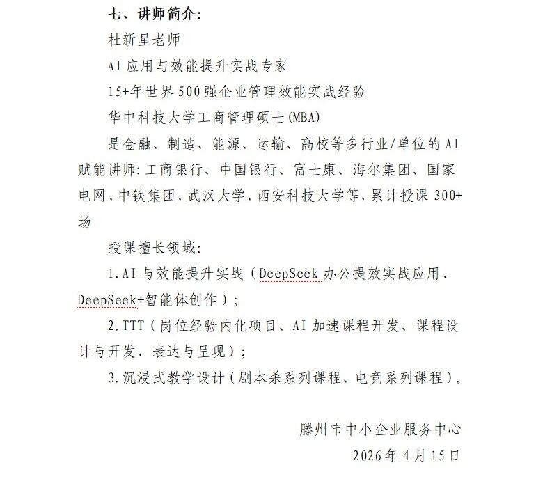 培训时间:2026 年 04 月 15 日