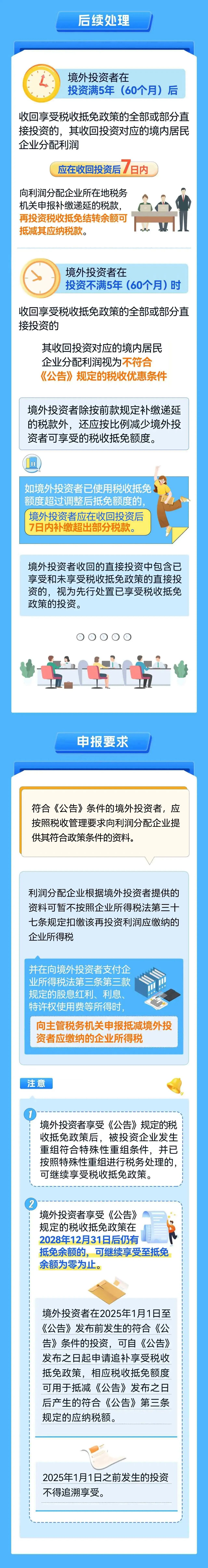 为进一步推进高水平对外开放,持续优化营商环境,促进外资企业在华所获利润更多用于再投资,近日,财政部 税务总局 商务部发布《关于境外投资者以分配利润直接投资税收抵免政策公告》,该政策自2025年1月1日起执行至2028年12月31日,都有哪些重点,一起来看看吧。
