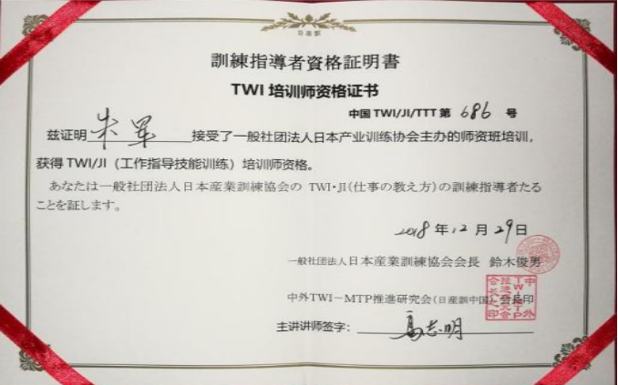 《创建技能型班组》(10期共20天) 《TWI--工作教导辅导》(6期) 《TWI一线主管管理技能提升》(8期) |