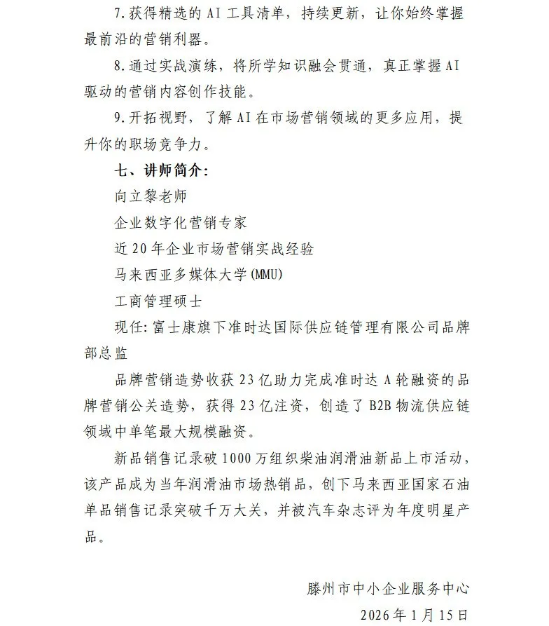 培训时间:2026 年 01 月 15 日