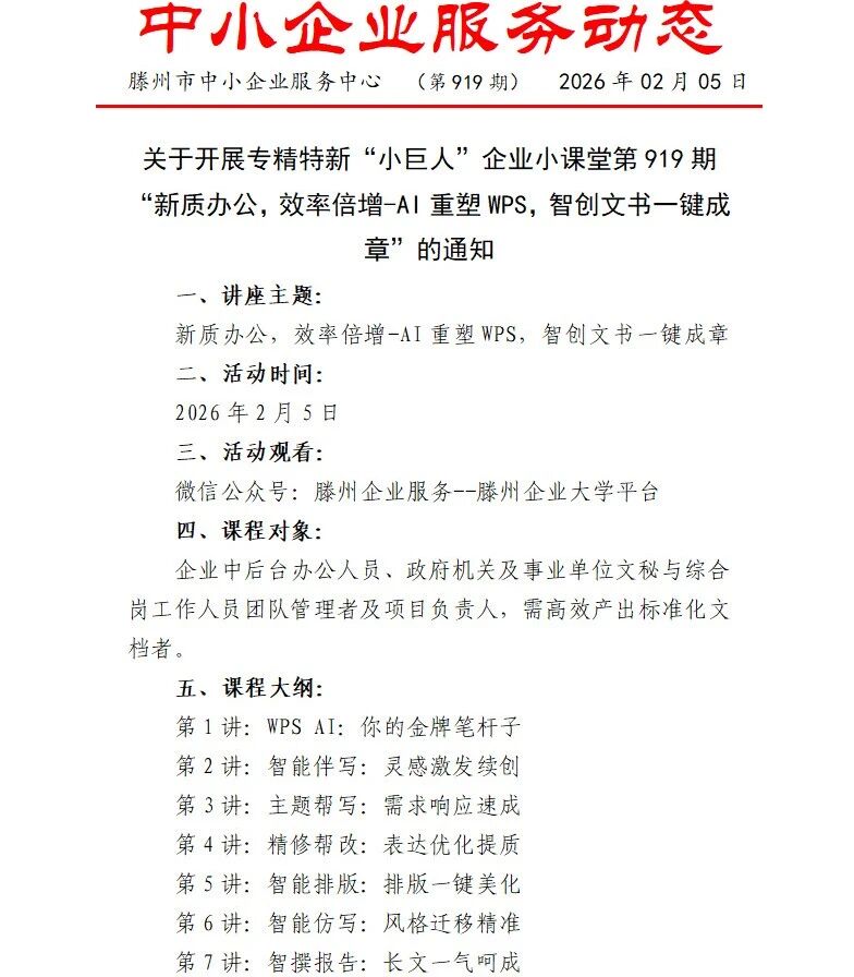 来自:滕州中小企业服务中心