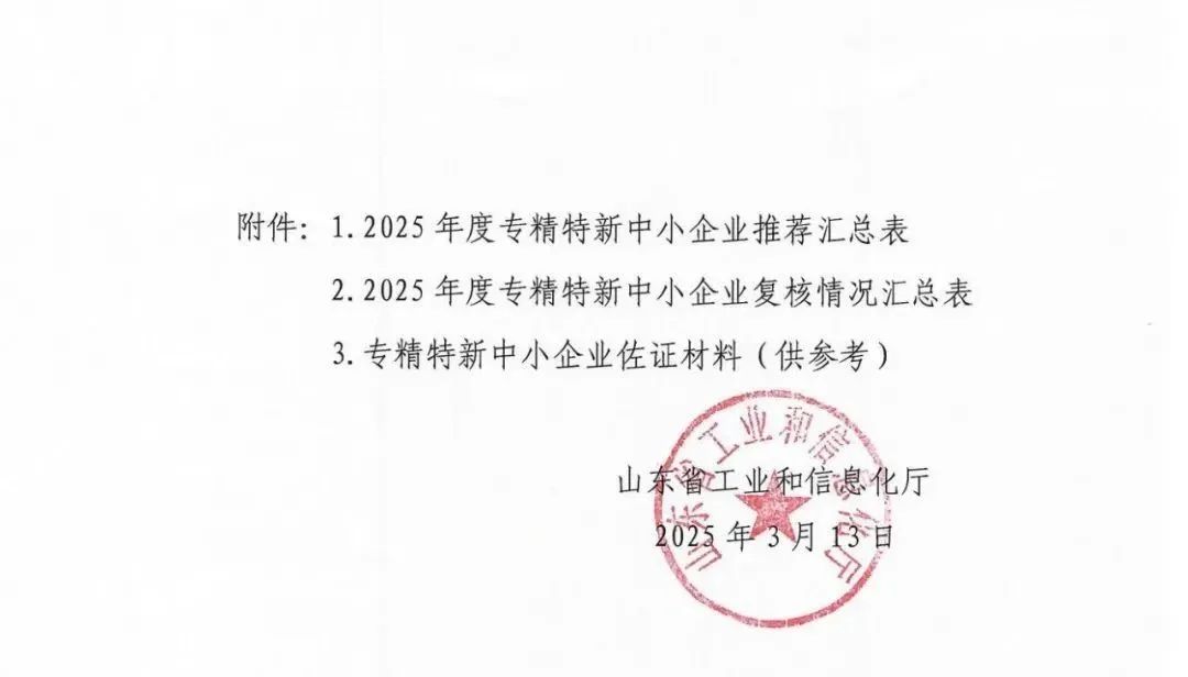 关于公布山东省2025年度第二批创新型 中小企业(枣庄市部分)的通知