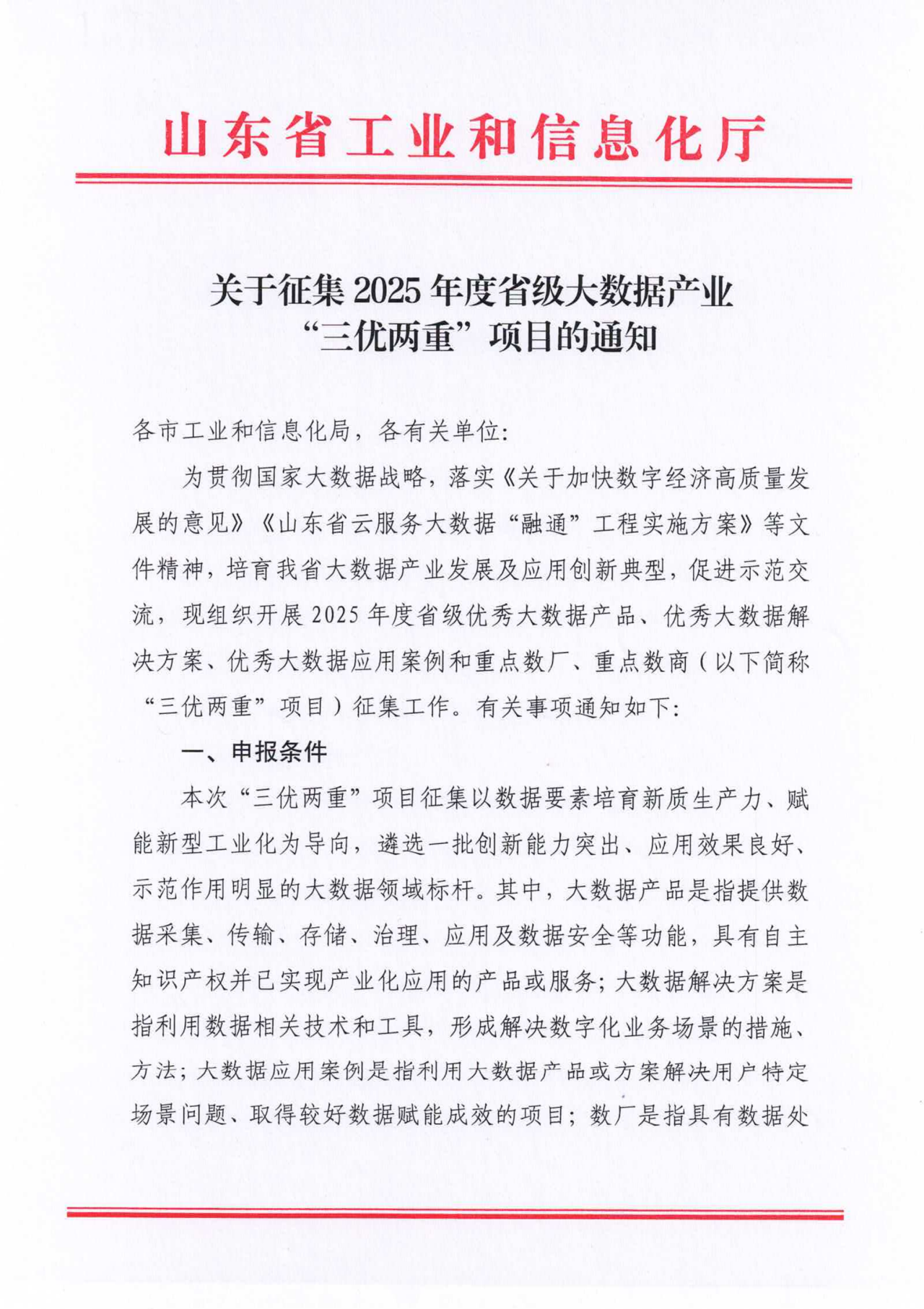 关于征集2025年度省级大数据产业“三优两重”项目的通知