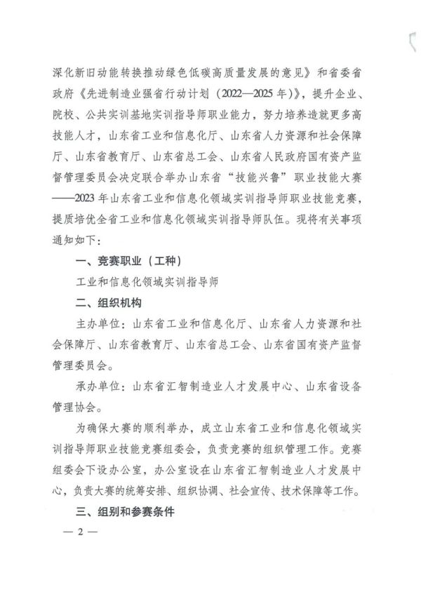 1.关于举办山东省“技能兴鲁”职业技能大赛—2023年山东省工业和信息化领域实训指导师职业技能竞赛的通知