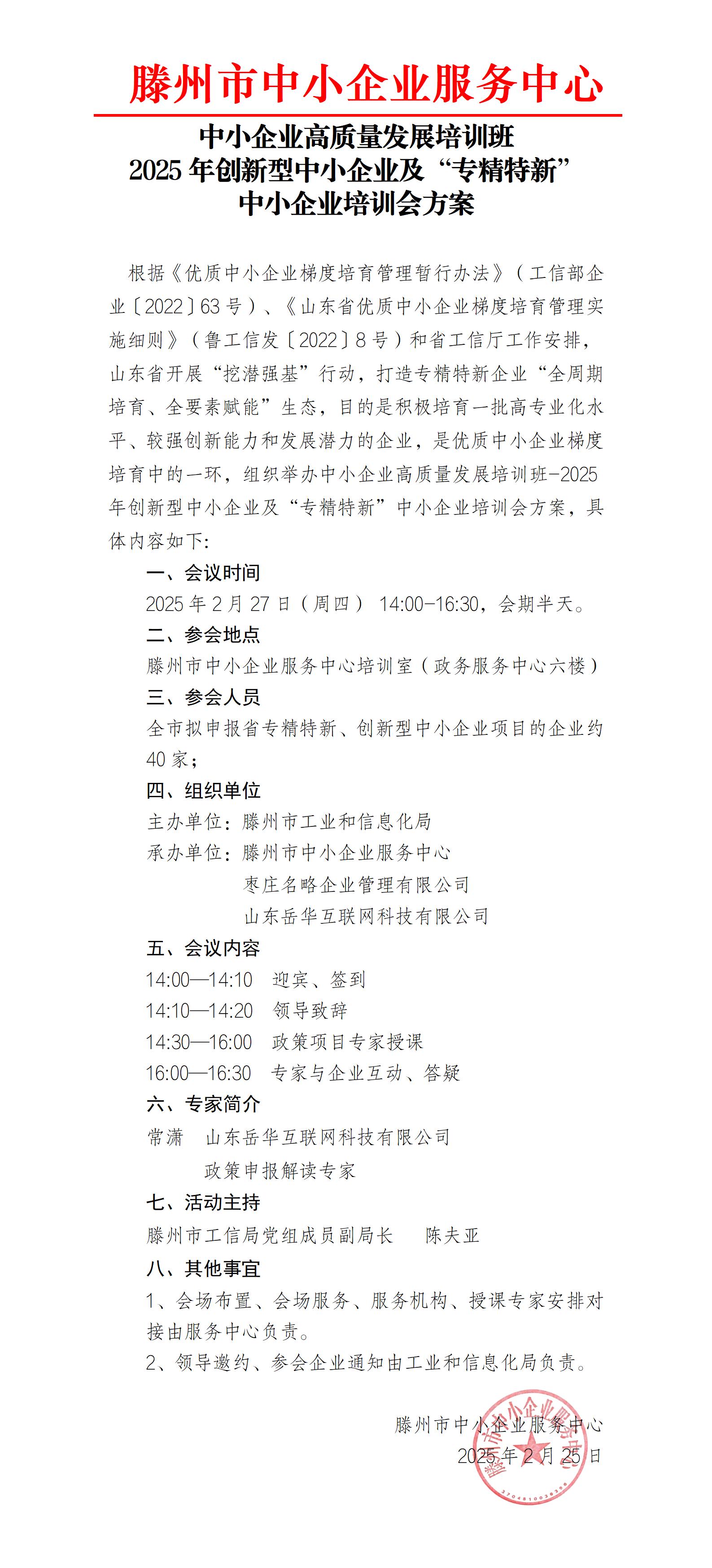 中小企业高质量发展培训班 2025年创新型中小企业及“专精特新” 中小企业培训会